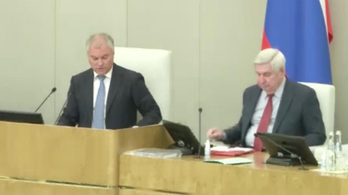 Госдума приняла во втором и третьем чтениях законопроект, вводящий в Уголовный кодекс понятия «мобилизация», «военное положение» и «военное время». Трансляция заседания велась на сайте нижней палаты парламента.