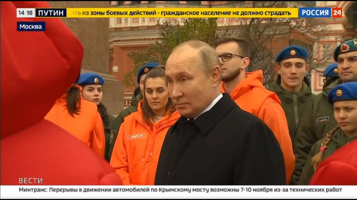 Президент России Владимир Путин объявил, что в России мобилизовали 318 тысяч человек, 49 тысяч из которых уже выполняют боевые задачи. Об этом он рассказал в ходе беседы с представителями молодежных волонтерских организаций у памятника Кузьме Минину и Дмитрию Пожарскому в Москве.