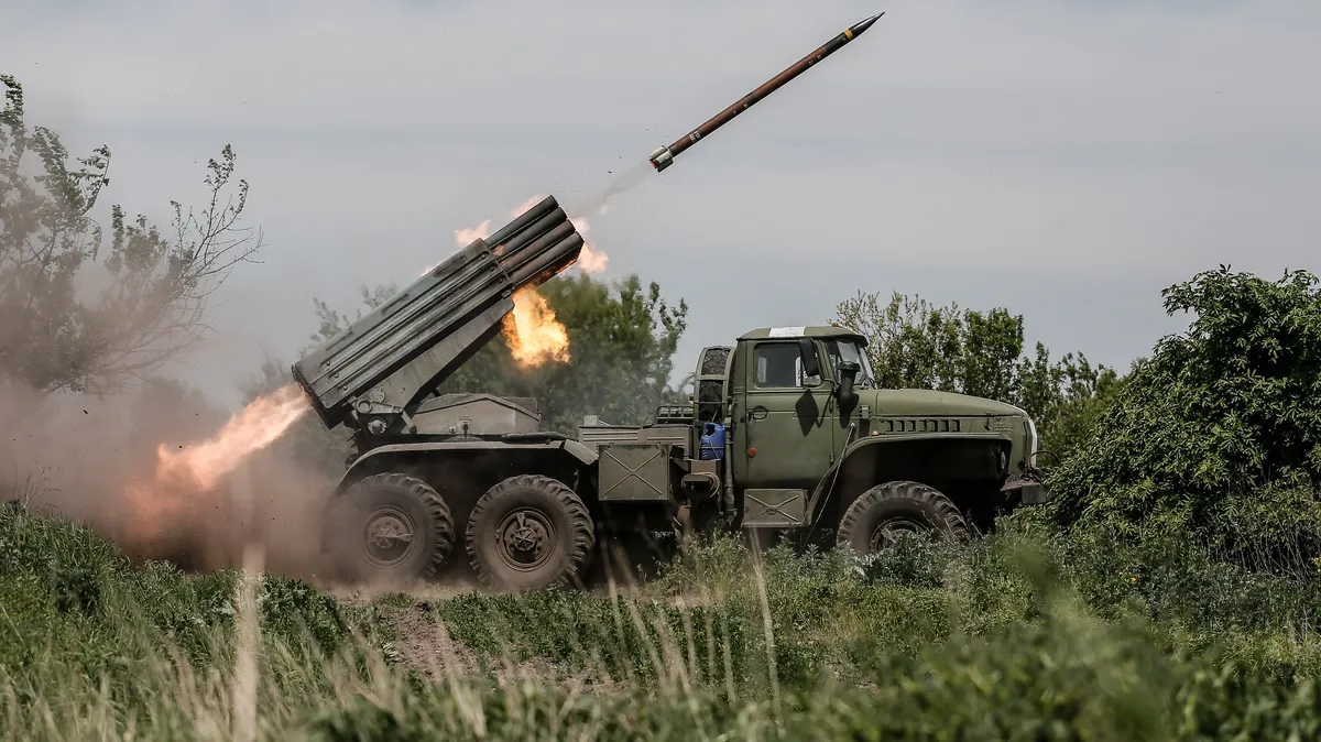 Украинские военнослужащие из 24-й механизированной бригады ведут огонь из реактивной системы залпового огня (РСЗО) БМ-21 «Град» в направлении Бахмута. Фото: EPA-EFE/OLEG PETRASYUK