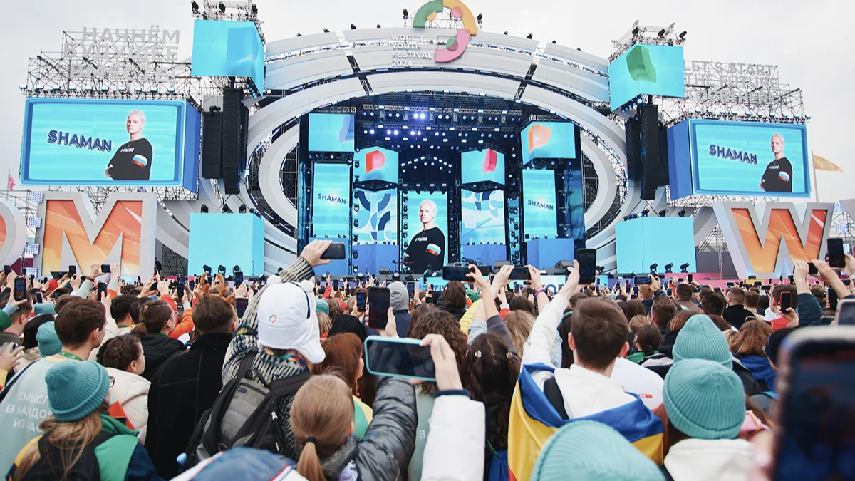 Певец SHAMAN выступает на сцене Всемирного Фестиваля Молодежи в Сочи, 6 марта 2024. Фото: fest2024.ru