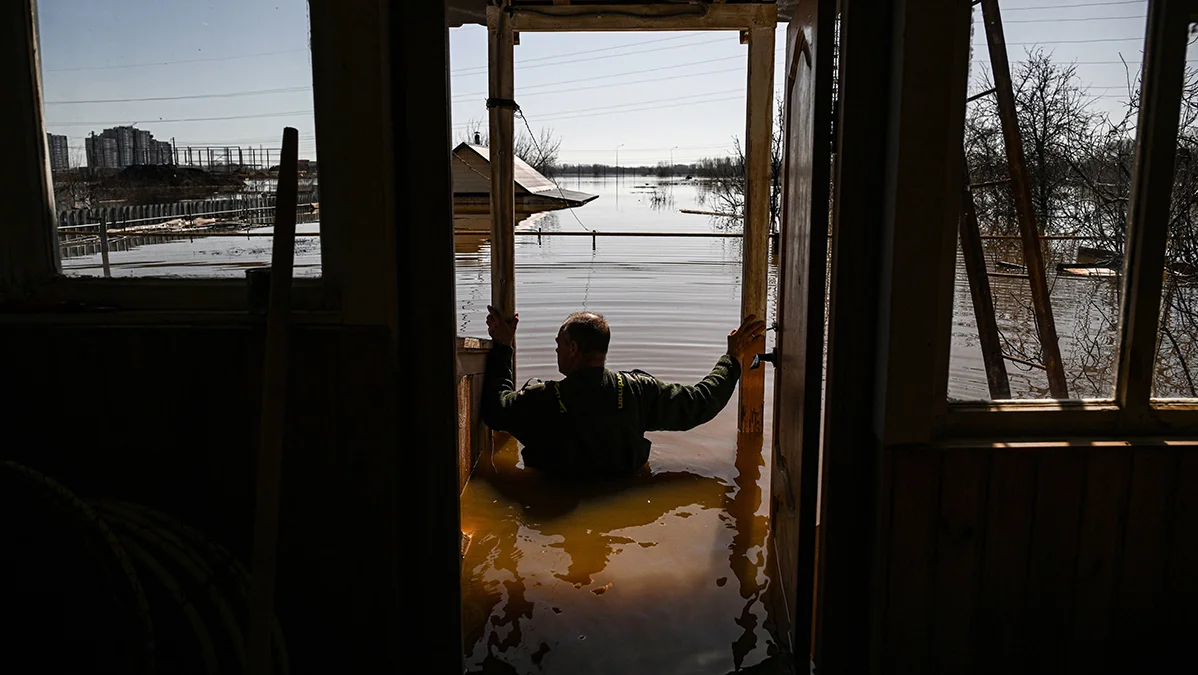 Затопленный дом в Оренбурге, 11 апреля 2024 года. Фото: Владимир Астапкович / IMAGO / Scanpix / LETA