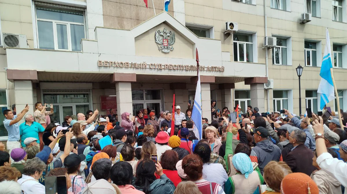 У верховного суда Республики Алтай, 18 августа 2025 года. Фото: Владимир Пастухов / «Пастухов на связи»