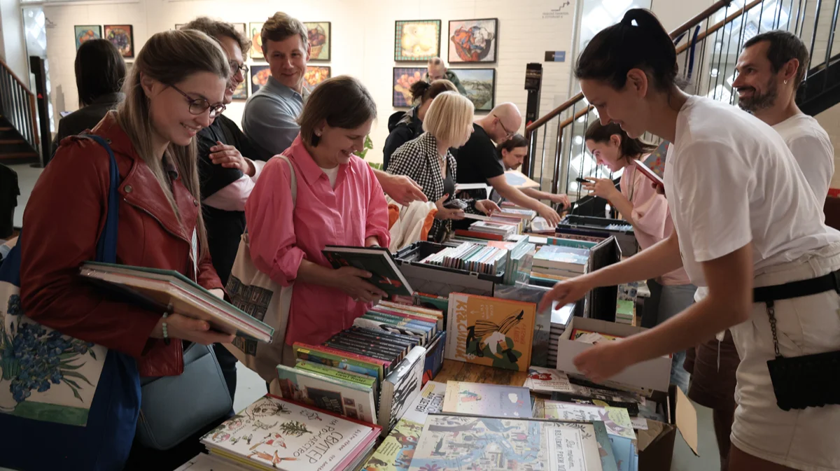 В качестве участников были приглашены два авторских книжных магазина — берлинский «Бабель» и амстердамский магазин детской и семейной книги «Лампешка». Они известны тщательным отбором литературы, и на фестивале представили специально составленные подборки взрослых и детских книг.