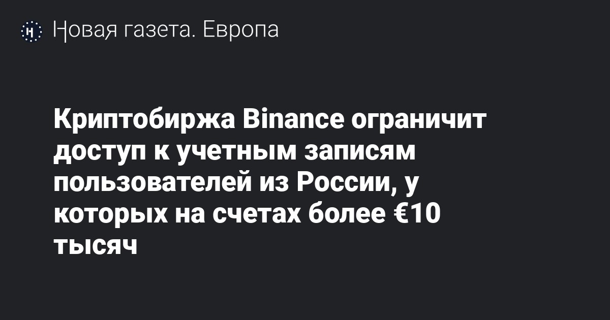Криптобиржа Binance ограничит доступ к учетным записям пользователей из России, у которых на счетах более €10 тысяч