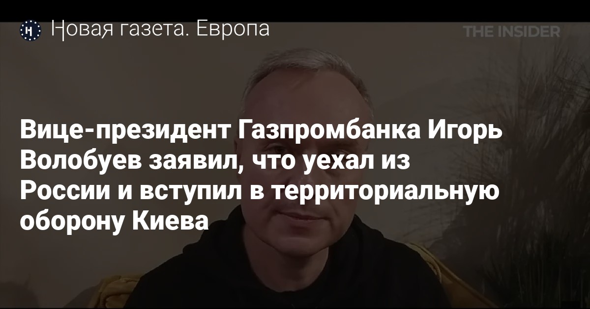 Вице-президент Газпромбанка Игорь Волобуев сообщил, что уехал из России и вступил в киевскую территориальную оборону. Об этом он рассказал в интервью изданию The Insider.