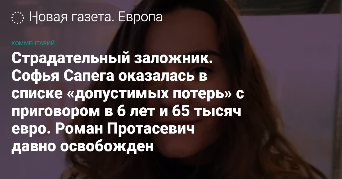 Софья Сапега в это время оказалась в качестве «страдательного залога». В день задержания контролируемые государством телеграм-каналы опубликовали видео, на котором она признается в редактировании канала «Черная книга Беларуси», где публиковались личные данные силовиков. Но было очевидно, что ради Сапеги самолет сажать никто бы не стал. Это так, бонус, просто в искусно раскинутую сеть попала еще одна рыбка — грех не съесть. Но как именно, с чем подавать на стол, в качестве какого блюда — судя по всему, увлеченные арестом Протасевича силовики этого так и не придумали.
