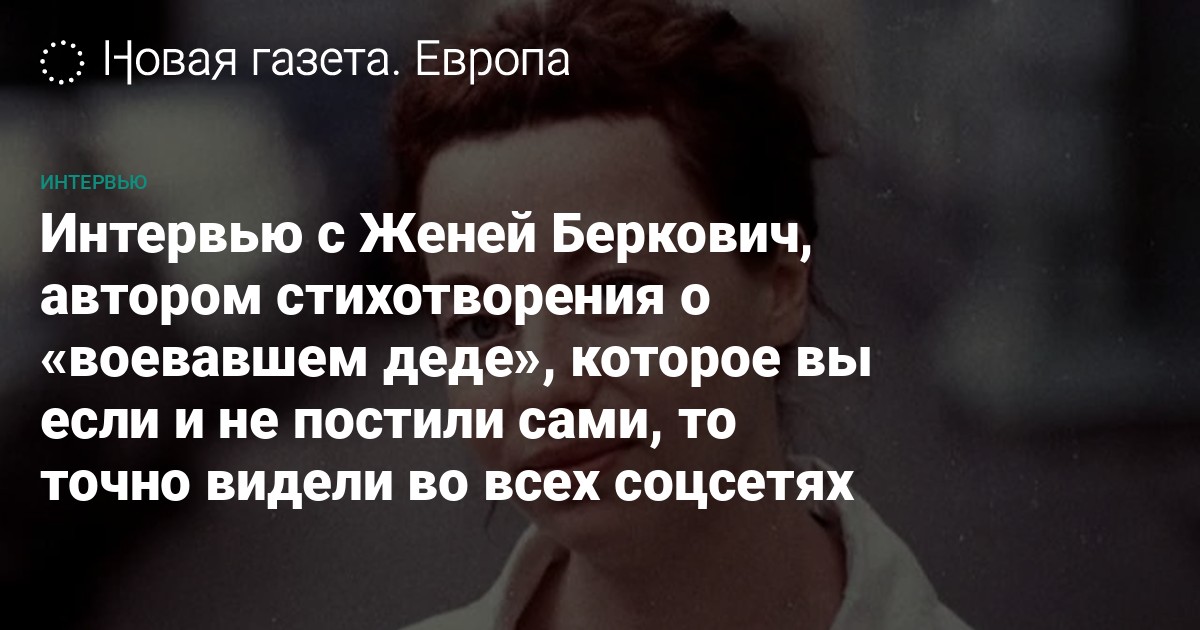 Интервью с Женей Беркович, автором стихотворения о «воевавшем деде», которое вы если и не постили сами, то точно видели во всех соцсетях
