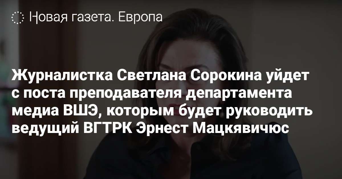 Журналистка Светлана Сорокина уйдет с поста преподавателя департамента медиа ВШЭ, которым будет руководить ведущий ВГТРК Эрнест Мацкявичюс