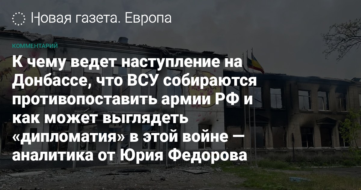 Через три с лишним месяца после начала российской агрессии «туман войны» в Украине стал менее плотным, обозначились итоги весенней кампании, вырисовываются контуры развития ситуации в ближайшие недели. Украина выдержала тяжелейший удар российской военной машины и нанесла Кремлю политическое и военное поражение: там были вынуждены отказаться от захвата Киева, смены руководства Украины и превращения ее в российский протекторат. В Москве выдвинули менее амбициозные цели: захват подконтрольных Киеву частей Донецкой и Луганской областей, а также южных регионов Украины вплоть, если повезет, до границы с Приднестровьем. Американское разведывательное сообщество оценивает сложившуюся ситуацию на фронтах как патовую: ни та, ни другая сторона не в состоянии достичь своих целей. Тем не менее, ожесточенные военные действия продолжаются. По просьбе «Новой газеты. Европа» военный эксперт Юрий Федоров оценил возможные пути развития на фронтах Украины.