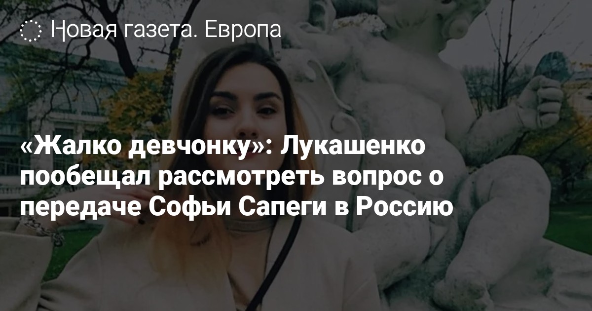 Александр Лукашенко, которого белорусский ЦИК назвал победителем президентских выборов 2020 года, пообещал рассмотреть вопрос о передаче осужденной в Беларуси Софьи Сапеги в Россию. Его слова цитирует агентство РИА Новости.