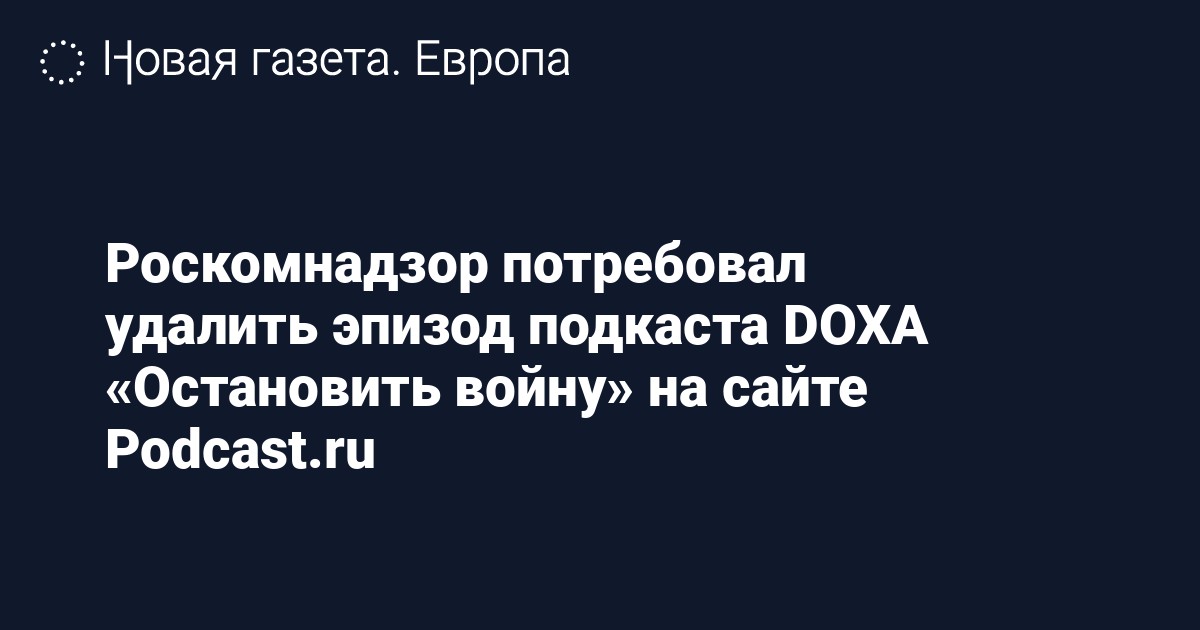 Роскомнадзор потребовал от издания Podcast.ru удалить один из эпизодов подкаста DOXA «Остановить войну». Об этом сообщается в телеграм-канале проекта.
