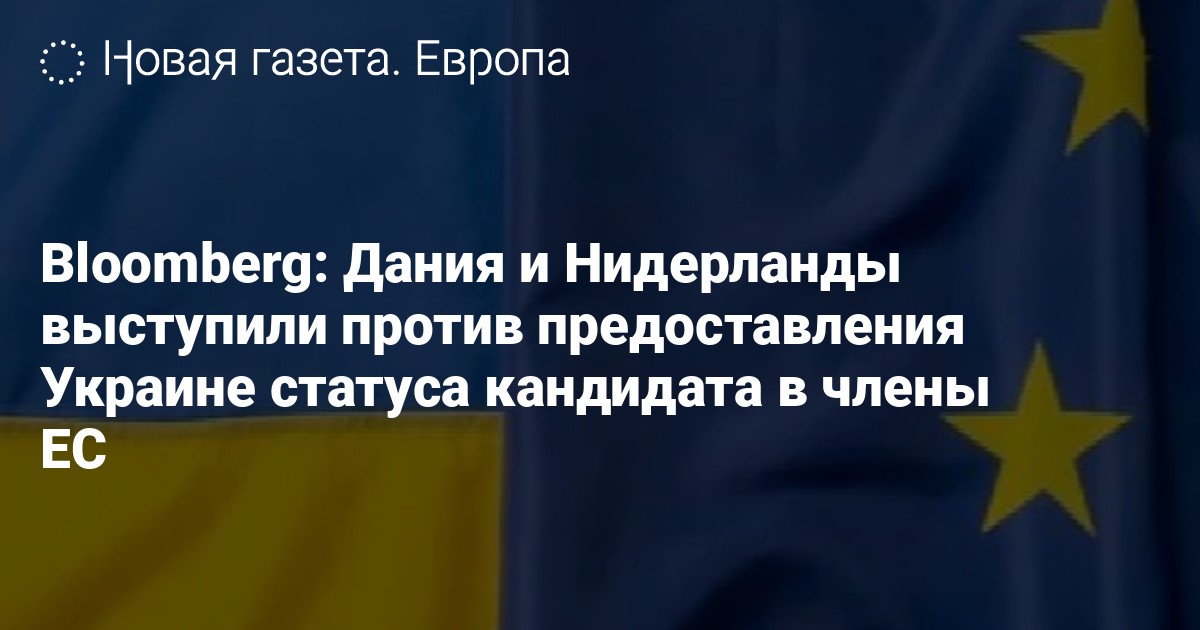 Дания, в частности, заявила, что Украина недостаточно соответствует критериям, связанным со стабильностью институтов, гарантирующих демократию, верховенство закона, права человека, уважение и защиту меньшинств, сообщает Bloomberg. Киеву, как пишет агентство, потребуется «принципиально улучшить свою законодательную и институциональную базу».