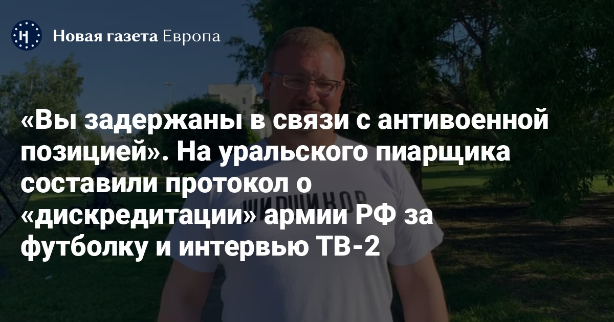 «Вы задержаны в связи с антивоенной позицией». На уральского пиарщика составили протокол о «дискредитации» армии РФ за футболку и интервью ТВ-2