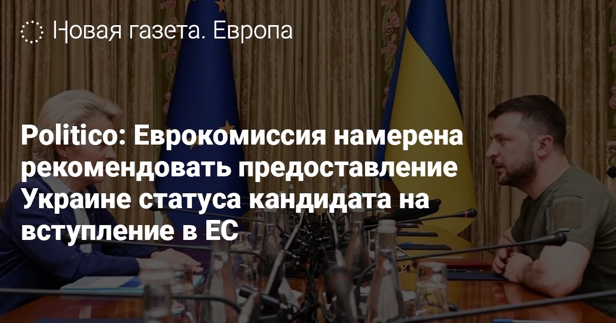 Politico: Еврокомиссия намерена рекомендовать предоставление Украине статуса кандидата на вступление в ЕС