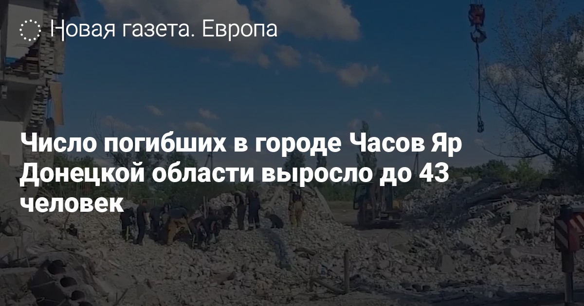 Число погибших в городе Часов Яр в Донецкой области увеличилось до 43 человек, сообщила Государственная служба по чрезвычайным ситуациям (ГСЧС) Украины на своей странице в фейсбуке.