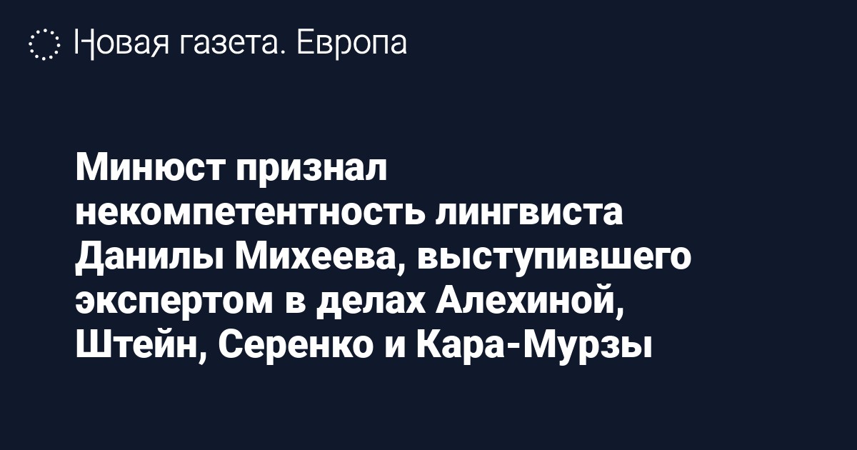 Минюст России дважды указал на недопустимость экспертной деятельности лингвиста Данилы Михеева, участвовавшего в делах активистов и признавшего экстремистским логотип Навального — букву «Н». Соответствующее письмо из ведомства есть в распоряжении «Медиазоны».