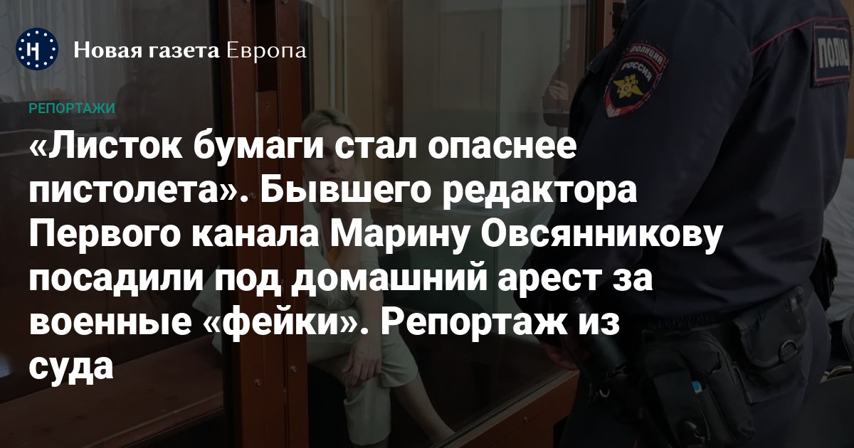 Экс-редактор Первого канала Марина Овсянникова стала фигуранткой уголовного дела о «публичном распространении заведомо ложной информации» о действиях российских военных. Накануне у нее прошли обыски, и ей предъявили обвинение за «антивоенный» пикет у Кремля. Саму журналистку оставили на ночь в ИВС. Она не признает вину и называет уголовное преследование «сюрреализмом». 11 августа Басманный суд отправил Овсянникову под домашний арест. Заседание прошло за закрытыми дверями без общественности и прессы. Такой закрытый режим суды начали «включать» по умолчанию почти сразу же, как только начали возбуждать дела по статье о военных «фейках».