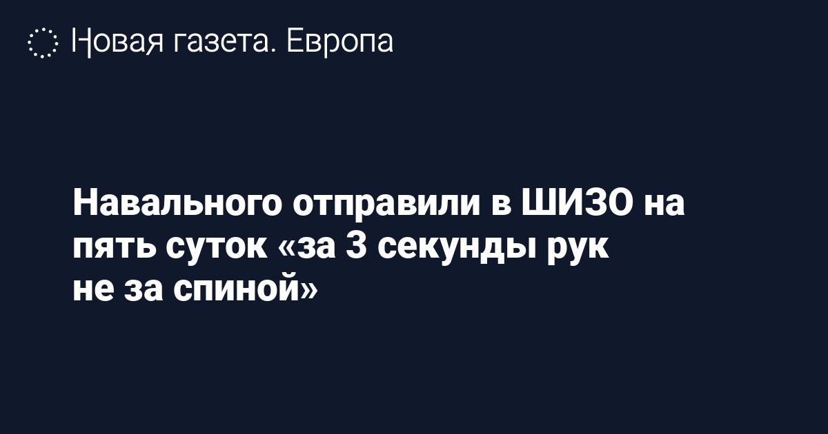 Политика Алексея Навального, отбывающего наказание в исправительной колонии №6 в Мелехово Владимирской области, вновь поместили в штрафной изолятор (ШИЗО), на этот раз — на пять суток. Об этом Навальный сообщил в телеграм-канале.