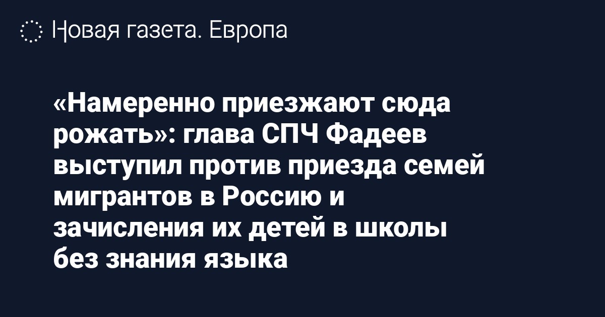 «Полагаем, что у тех мигрантов, кто временно работает в России, нет оснований привозить сюда свои семьи. Тем более что многие намеренно приезжают сюда рожать», — утверждает Фадеев.