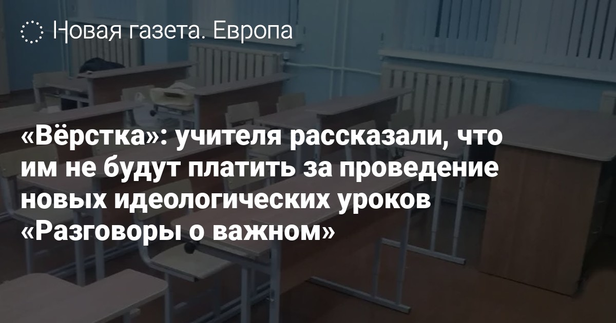 «Вёрстка»: учителя рассказали, что им не будут платить за проведение новых идеологических уроков «Разговоры о важном»