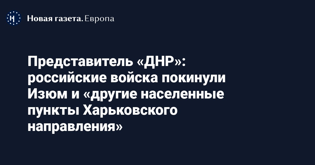 Российские войска покинули Изюм и «другие населенные пункты Харьковского направления», написал в своем телеграм-канале представитель самопровозглашенной «ДНР» Денис Безсонов.