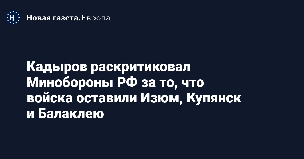 При этом он сказал, что было обидно от отсутствия информации о ситуации с отводом войск. Кадыров заявил, что, если бы российское командование того хотело, войска не сделали бы ни шагу назад. Но людей не успели подготовить к тому, что армия уйдет из Изюма, Балаклеи и Купянска.