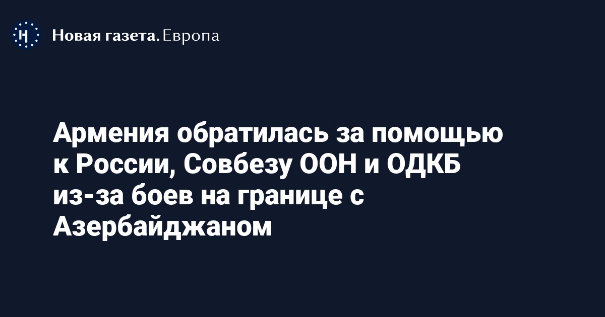 Правительство Армении приняло решение официально обратиться за помощью к России, странам-членам Организации договора о коллективной безопасности (ОДКБ) и Совету безопасности ООН из-за боев, которые начались ночью на границе с Азербайджаном.