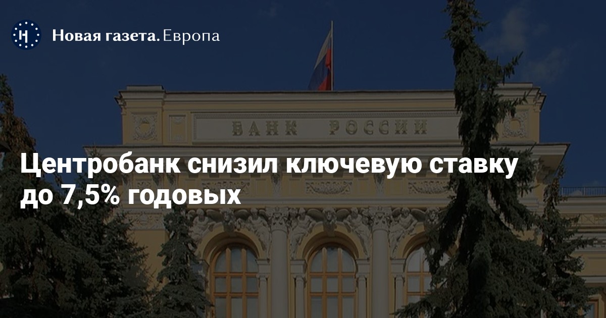 Центробанк снизил ключевую ставку на 0,5 процентных пунктов до 7,5%. Как утверждается на сайте регулятора, темпы прироста потребительских цен остаются низкими, способствуя дальнейшему замедлению годовой инфляции.