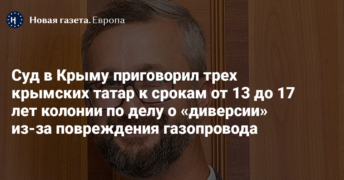 Суд в Крыму приговорил трех крымских татар к срокам от 13 до 17 лет колонии по делу о «диверсии» из-за повреждения газопровода