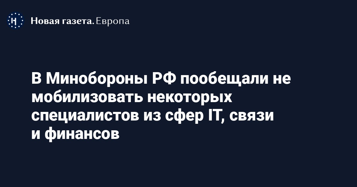 Минобороны РФ сообщило, что не будет привлекать на военную службу в рамках частичной мобилизации граждан, работающих по некоторым специальностям. Список опубликован в телеграм-канале ведомства.
