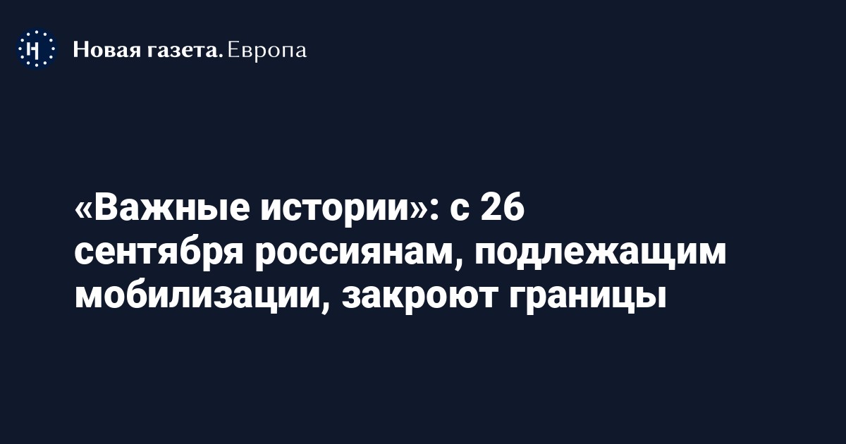 «Важные истории»: с 26 сентября россиянам, подлежащим мобилизации, закроют границы