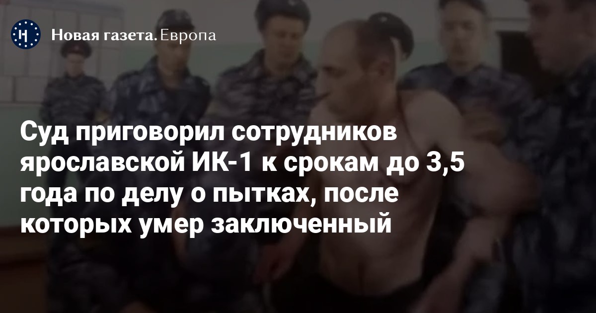Суд приговорил сотрудников ярославской колонии Сергея Гусарина и Вячеслава Шашкина к трем годам лишения свободы, а Сергея Кузьмина — к трем с половиной годам лишения свободы. Все трое признаны виновными в превышении должностных полномочий с применением насилия и оружия или специальных средств (п. «а» и «б» ч.3 ст. 286 УК). Сотрудники ФСИН «признали вину и раскаялись в преступлении», отмечает «Общественный вердикт».