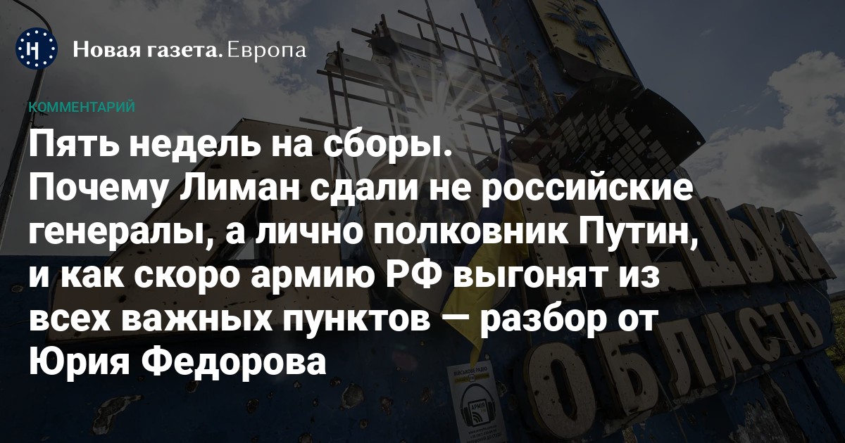 Почему Лиман сдали не российские генералы, а лично полковник Путин, и как скоро армию РФ выгонят из всех важных пунктов — разбор от Юрия Федорова