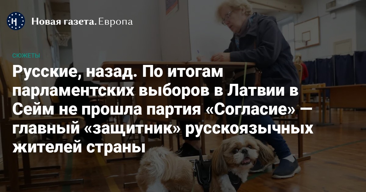 1 октября в Латвии состоялись выборы в 14-й Сейм — главный законодательный орган страны. Наибольшее представительство в парламенте получила центристская партия нынешнего премьера Кришьяниса Кариньша «Новое Единство». Скорее всего, именно они будут формировать правящую коалицию и новый Кабинет министров. А вот победитель предыдущих выборов — партия «Согласие», традиционно представляющая интересы русскоязычных жителей Латвии, — потерпел сокрушительное поражение: «Согласие» не преодолело пятипроцентный барьер и не прошло в Сейм.