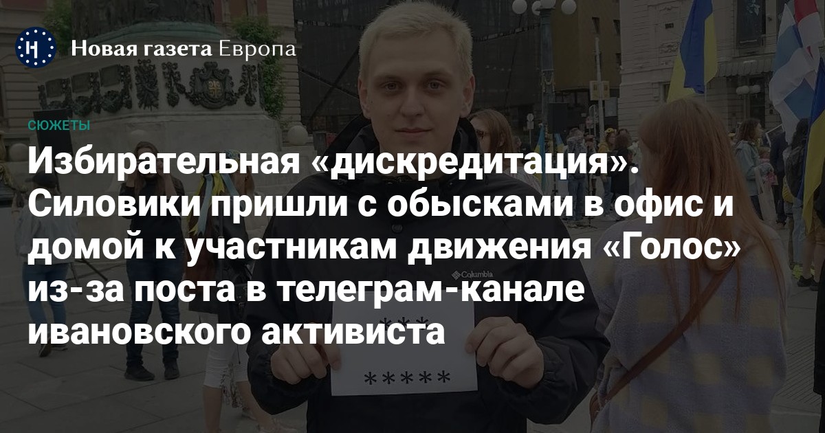 В нескольких регионах России прошли обыски у аналитика по выборам Сергея Шпилькина и сотрудников движения «Голос» (Минюст РФ давно считает его «иностранным агентом») по уголовному делу о дискредитации российских военных. Поводом к преследованию стала публикация в телеграм-канале «Дневник эмигранта», где ивановский активист Михаил Гусев написал, что в отношении него собирались завести уголовное дело об уклонении от призыва на военную службу. Он заявил, что не хочет идти в армию, которую охарактеризовал как «оккупационную». В самом движении назвали массовые обыски давлением на гражданских наблюдателей в преддверии президентской избирательной кампании 2024 года.