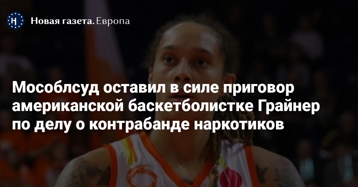 Московский областной суд признал законным приговор американской баскетболистке Бриттни Грайнер, которую в августе приговорили к девяти годам колонии по делу о контрабанде наркотиков. Об этом сообщает РИА Новости со ссылкой на корреспондента из зала суда.