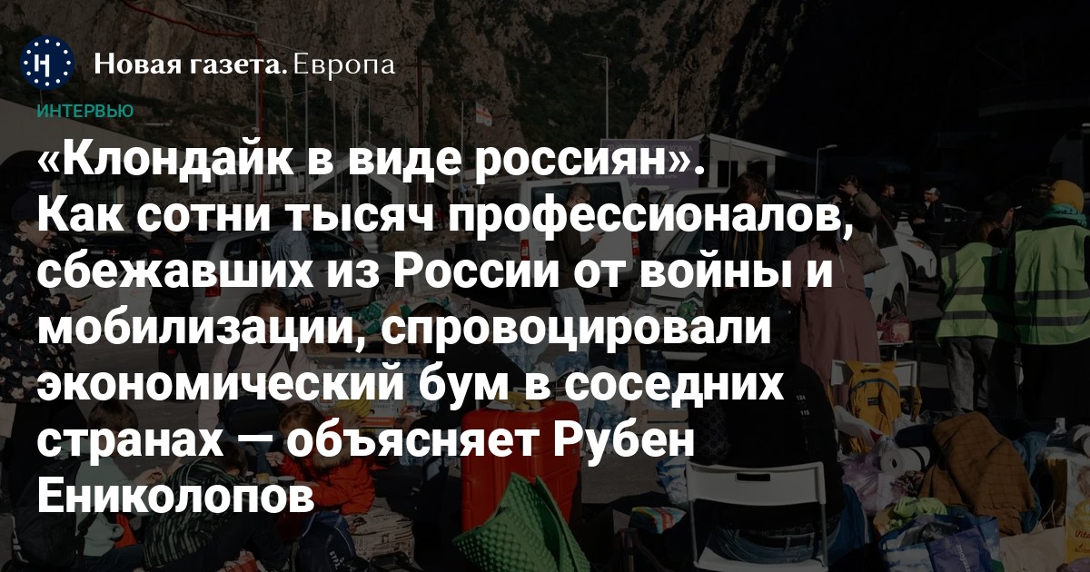 В октябре Центральный банк Армении улучшил прогноз по росту ВВП страны в 2022 году с 1,6 до 13%. Председатель ЦБ Мартин Галстян объяснил это приездом в страну талантливых и хорошо образованных россиян, преимущественно работников IT-сектора. Всего, по разным оценкам, после объявления мобилизации из России уехало несколько сотен тысяч молодых мужчин. Мы поговорили с научным руководителем Российской экономический школы Рубеном Ениколоповым о том, может ли массовая эмиграция россиян привести к экономическому чуду в соседних странах и насколько опасна такая утечка мозгов для самой России.