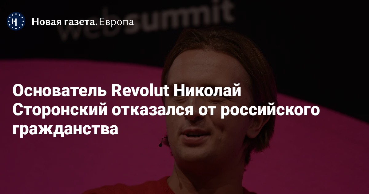 Основатель Revolut Николай Сторонский отказался от российского гражданства