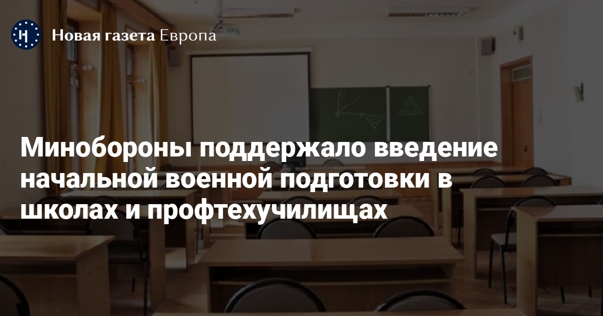 Минобороны России поддержало введение начальной военной подготовки в школах и профтехучилищах, сообщают «Известия» со ссылкой на письмо замминистра обороны Валерия Герасимова руководителю фракции «Справедливая Россия — За правду» Сергею Миронову.