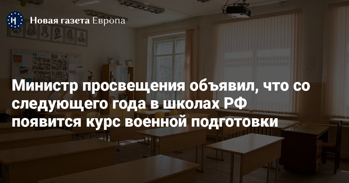 Министр просвещения России объявил, что со следующего года в школах появится крус по начальной военной подготовке. Его слова передает РИА Новости.