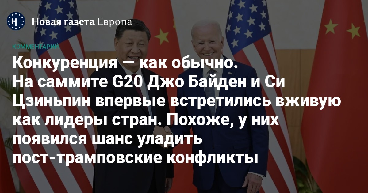 В понедельник на индонезийском острове Бали завершилась первая очная встреча председателя КНР Си Цзиньпина и американского президента Джозефа Байдена, проходившая в рамках саммита G20 («Группы двадцати»). Для Си Цзиньпина встреча стала полноценным возвращением в мировую политику: глава КНР не покидал страны со времени начала пандемии, и только в конце сентября впервые за два года выехал за границы КНР, чтобы поучаствовать в саммите Шанхайской организации сотрудничества, который прошел в узбекском Самарканде.