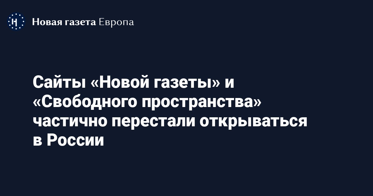 Сайты российского издания «Новая газета» и сайта-конструктора «Свободное пространство» перестали открываться в России, свидетельствуют данные сервиса GlobalCheck.