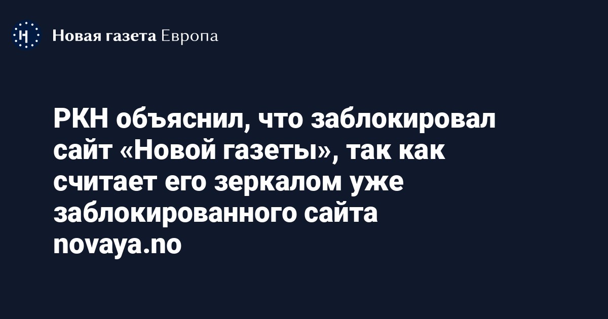 Накануне, согласно данным сервиса GlobalCheck, сайты novayagazeta.ru и novaya.media перестали открываться из России. В РКН подтвердили, что блокируют на территории РФ сайт «Новой газеты» и ее проекта. На каком основании и по чьему решению блокируются эти ресурсы, указано не было. Запущенные проекты «Новой» не являются их «зеркалами».
