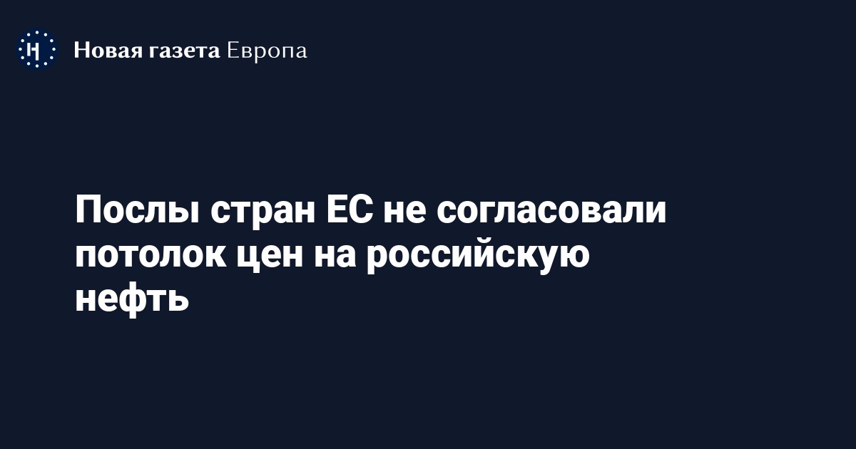 Как сообщила газета Politico со ссылкой на дипломатов и официальных лиц в ЕС, большинство стран Евросоюза согласны с потолком цен на российскую нефть на уровне $65-70 за баррель, однако Польша выступает за потолок на уровне $30 за баррель. Послы «с утра до поздней ночи» обсуждали максимальный уровень потолка цен, но не смогли его согласовать, рассказала газета.
