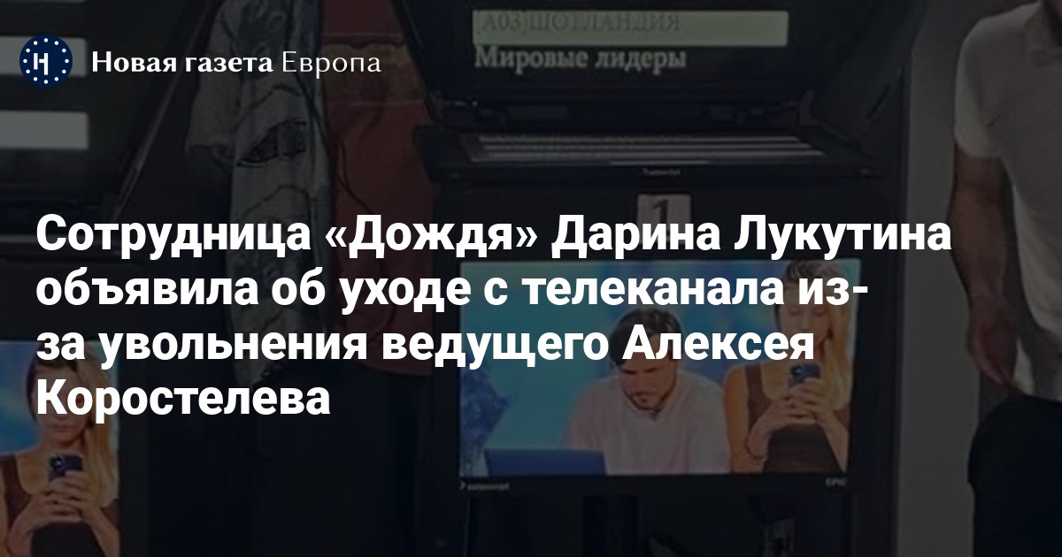 Сотрудница «Дождя» Дарина Лукутина объявила об уходе с телеканала из-за увольнения ведущего Алексея Коростелева