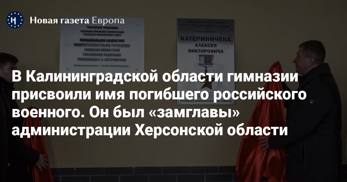 Гимназии города Гурьевск в Калининградской области присвоили имя погибшего российского военного Алексея Катериничева, который занимал должность «замглавы» пророссийской администрации Херсонской области. Об этом сообщается на сайте гимназии.