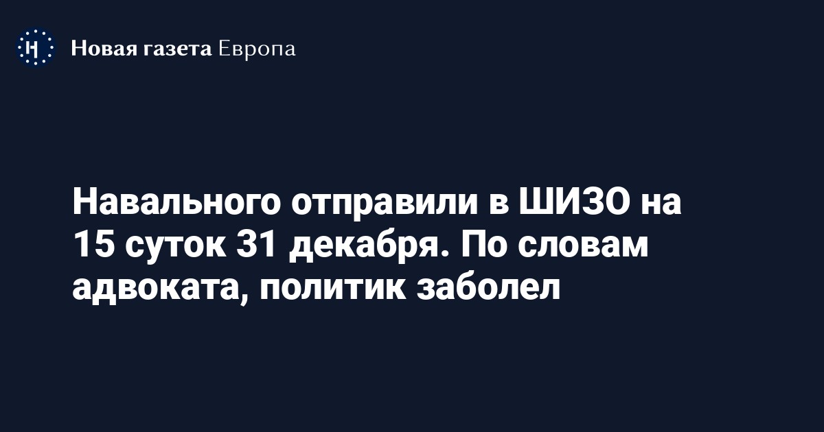В девятый раз Навального водворили в карцер в середине декабря на 12 суток из-за того, что он «в разговоре с сокамерником употребил слово "блядь"». Навального отправляют в ШИЗО в девятый раз за последние полгода, с середины августа он находится там практически непрерывно.