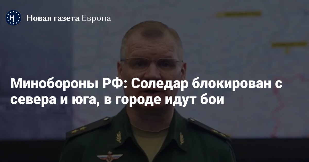 Минобороны России отчиталось, что город Соледар в Донецкой области блокирован с севера и юга подразделениями ВДВ. Об этом заявил официальный представитель министерства Игорь Конашенков на брифинге.