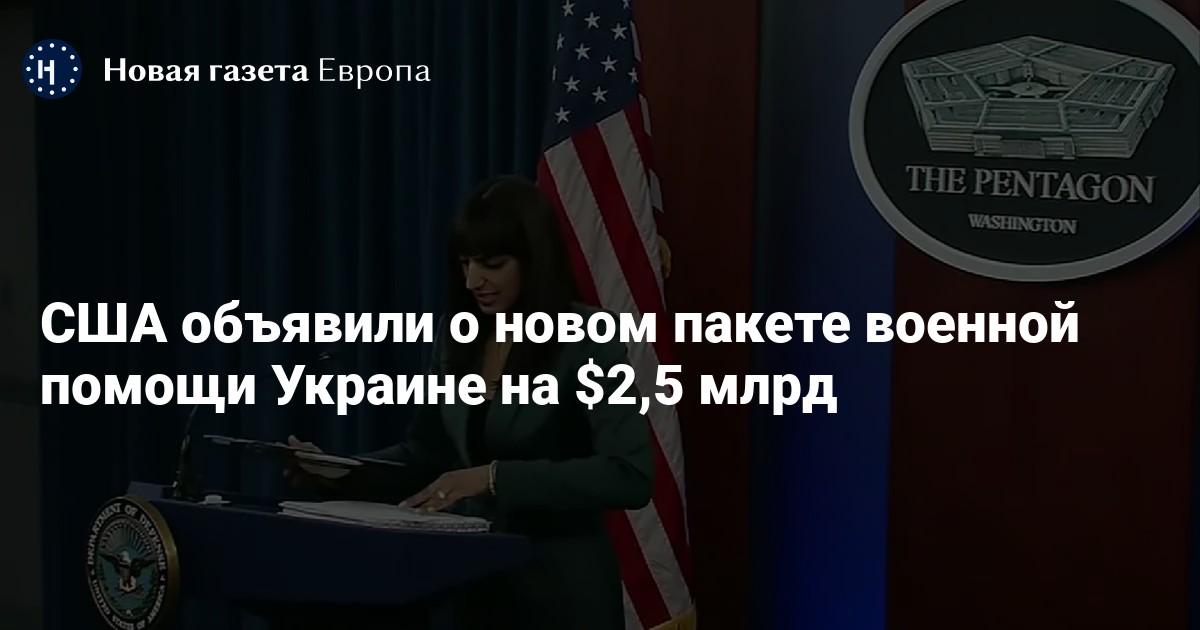 Соединенные Штаты предоставят Украине новый пакет военной помощи на сумму $2,5 млрд, объявил Пентагон.