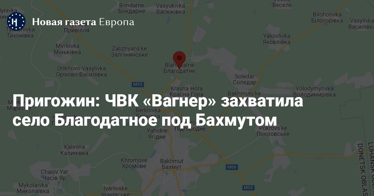 Пригожин: ЧВК «Вагнер» захватила село Благодатное под Бахмутом